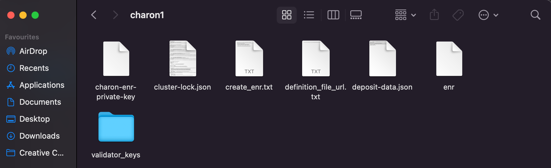 docker run --rm -v "$(pwd):/opt/charon" obolnetwork/charon:v1.9.0 create enr