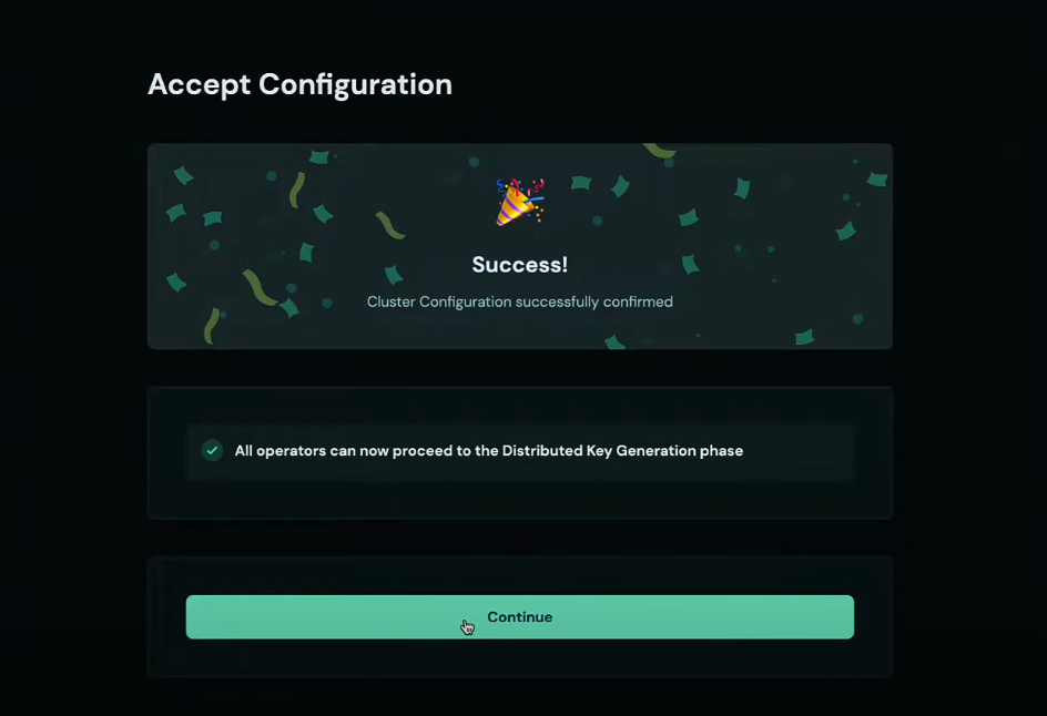 On the next page, they will find a CLI command which is used to begin the Distributed Key Generation (DKG) ceremony. All members need to synchronously complete this step.